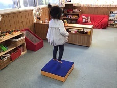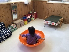 しかしながら大勢のお子さんを見る中で0歳1歳のもっと小さい時期からその特徴を感じることがあります。加配などの対象にはなっていませんが実際には、なるべく早い時期に気付いて、対応出来るとよいようです。自園では、日常的に遊びで使う遊具の中に感覚統合を促せるような遊具を整えています。回る とか揺れる とか飛ぶ といった動きが体験できるようなものです。