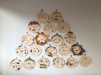 またあるクラスは見るだけでも楽しいと思いますが、自然の素材をたっぷりと準備し、丸い紙一枚を準備し、何を作りましょうということではなく、自由に材料を選んで、創造性を発揮し、思い思いの作品を作っていました。