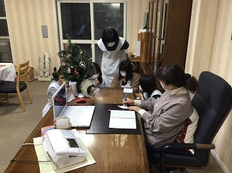 配信するにあたって各クラス少しの説明の文章を載せた方がいいよね。ということで、幼児の担任が園長の所に相談に来てくれて、結局全員であ~でもない、こ~でもないと話していました。