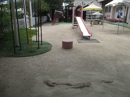 砂地の園庭に木の、根が出ている所があります。考え方によっては突然出っ張っているから安全のために削って平らにした方が良いと考えることもありますし、そうした場があってもそれぞれが危なくないように気を付けて遊ぶという事も考えられます。どちらでも良いと思いますが、自園でもそのままそれぞれが気を付けるというスタンスを取っています。