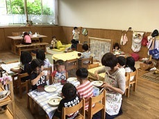 自園では園での昼食を給食とは言わず、お食事と言っています。