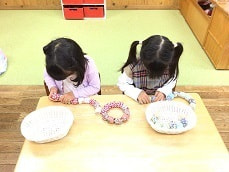 場合によっては年長児でも指先に力が入りにくかったり、手首の動かし方が難しかったりする子がいます。それぞれに事情はありますが、そうした子が増えているようです。先日、研修のために伺った園でもそうした状況がありました。鉛筆やペンを持つ時にも同じ事です。そこで、乳児が指先を使って遊ぶための玩具を幼児クラスにも備えることにしました。発達が年齢なりにしていなければ戻って遊びの中で沢山経験や体験が出来るように環境を整える必要があります。そしてやはり、その発達を必要としている子はだいたいはその遊びを選び楽しめるようで、熱心に遊んでいます。また反対に苦手で選ばない場合は、誘ったり促したりしています。